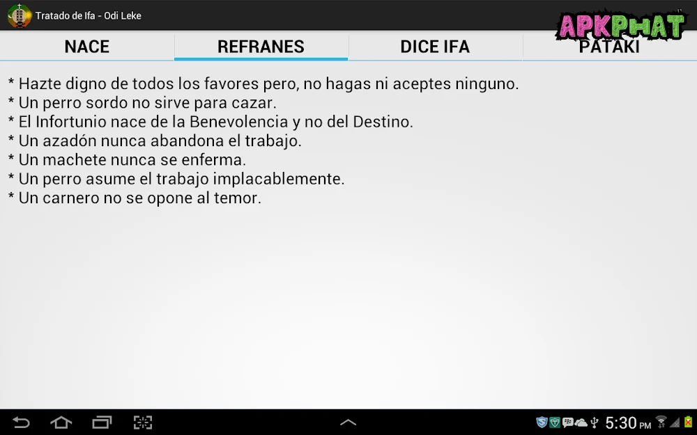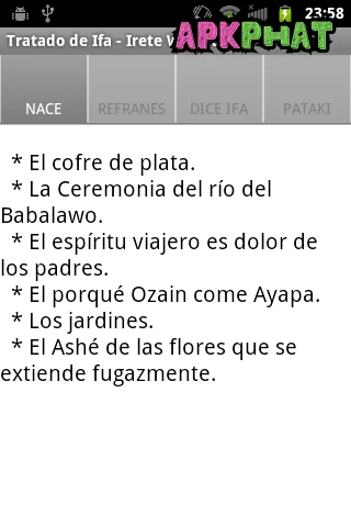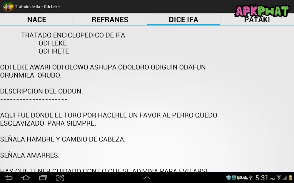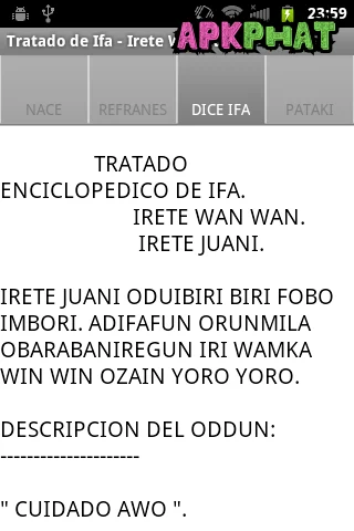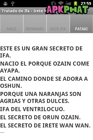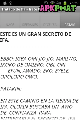 Complete Access to 256 Oddun Ifa: The app offers a thorough exploration of each Oddun, including interpretations, proverbs, teachings, and Pataki (legends) associated with each one.